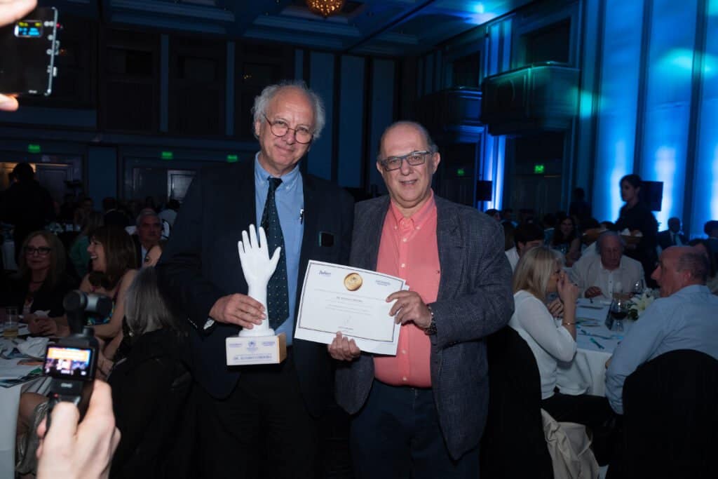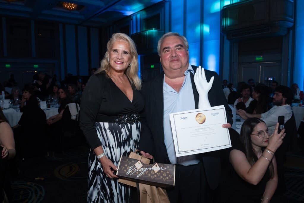 Entre las personalidades más destacadas de la noche se encontraban el Dr. Leonel Malacrida, pionero en el desarrollo de instrumentos de microscopía multifotón y resolución temporal, así como en la creación del innovador software PhasorPy, utilizado para el análisis de imágenes hiperespectrales y con resolución temporal. Por su parte, el Dr. Gustavo Bruno fue reconocido por identificar una proteína en la sangre que podría servir como marcador para predecir el éxito de las cirugías bariátricas.